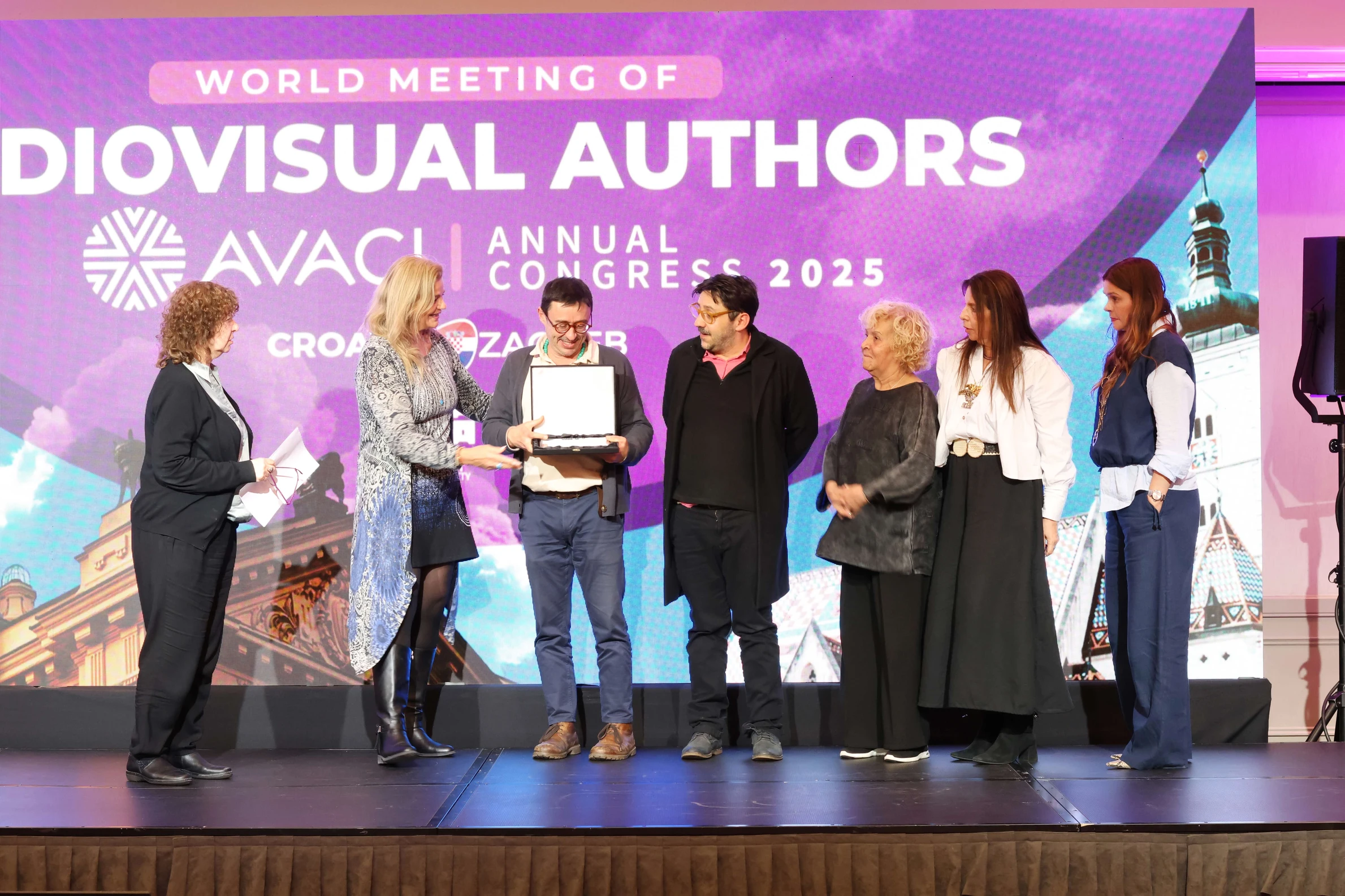 The annual Congress of the International Confederation of Audiovisual Authors —AVACI— and the Federation of Latin American Audiovisual Authors’ Societies —FESAAL— held on November 4, 5, and 6 in Zagreb, Croatia, presented the Grand Honor Award to audiovisual authors Horacio Maldonado, Danilo Šerbedžija, and Sylvia Palma. A posthumous tribute was also dedicated to Camila Loboguerrero.